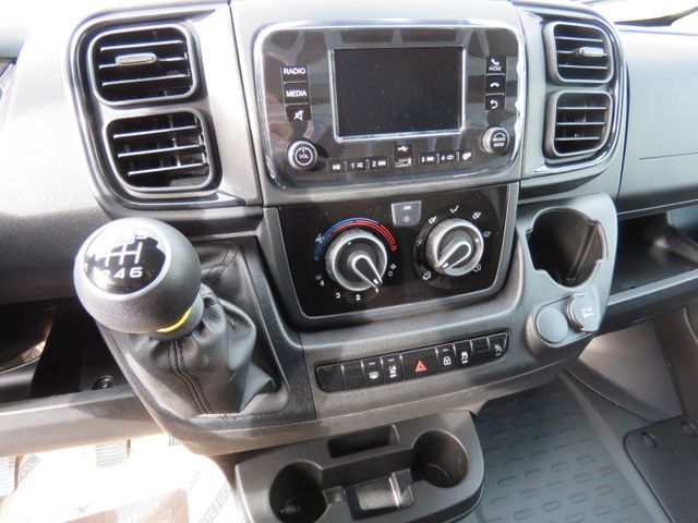 Airbag Beifahrerseite, Airbag Fahrerseite, Anhänger-Stabilisierungs-Programm, Antriebs-Schlupfregelung (ASR), Außenspiegel elektr. verstell- und heizbar, Außenspiegel lang, für Fahrzeugbreite 2200 mm, Black-Box (Event Data Recorder, EDR), Bremsassistent, Dachantenne, Eco-Paket, Einparkhilfe elektronisch, Fahrassistenz-System: Adaptive Lastkontrolle (LAC), Fahrassistenz-System: Berganfahr-Assistent, Fahrassistenz-System: Intelligenter Geschwindigkeits-Assistent, Fahrassistenz-System: Müdigkeits-Warner, Fahrassistenz-System: Notbrems-Assistent, Fahrassistenz-System: Post-Collision-System, Fahrassistenz-System: Seitenwind-Assistent, Fahrassistenz-System: Spurhalteassistent, Fahrassistenz-System: Spurhalteassistent inkl. Verkehrszeichenerkennung, Fahrassistenz-System: Überschlag-Schutzsystem, Generator 180 A, Geschwindigkeits-Regelanlage (Tempomat) inkl. Geschwindigkeits-Begrenzeranlage, Handschuhfach mit Kühlfunktion, Heckflügeltüren ohne Verglasung, Infotainment-System mit 5" Farbdisplay, DAB und Bluetooth-Schnittstelle, Karosserie/Aufbau: Kasten Hochraum Standard, Kraftstofftank: 90 Ltr., Kühlergrill schwarz, Laderaumtrennwand, Modellpflege (2), Motor 2,2 Ltr. - 103 kW Turbodiesel Multijet, Radstand 3450 mm, Reifen-Reparaturkit, Reifendruck-Kontrollsystem, Rückfahrwarner akustisch (Warnsignal außen), Schadstoffarm nach Abgasnorm Euro 6e, Scheinwerfer Halogen, Schiebetür Lade-/Fahrgastraum rechts, Sitzbezug / Polsterung: Stoff, Sitze im Fahrerhaus: Beifahrerdoppelsitz, Sitze im Fahrerhaus: Fahrersitz mit Armlehne und Lendenwirbelstütze, Start/Stop-Anlage Motor, Telekamera nach hinten, Telematik-System UConnect Box, Zul. Gesamtgewicht 3,50 t